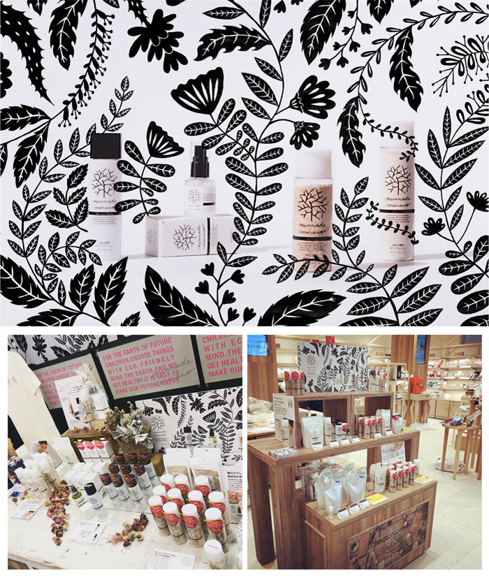 自然の草花をモチーフに、それらをシンプルにデザイン化されており、店舗内でも目を引きます。