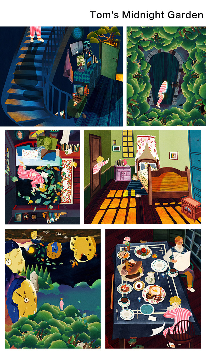 This is a part of a series of illustrations created for the novel Tom's Midnight Garden of the same name. I combined traditional painting with digital painting and chose some unusual compositions and perspectives. I hope that with the help of these illustrations, readers can have a more immersive experience of the bizarre and amazing world of the book.