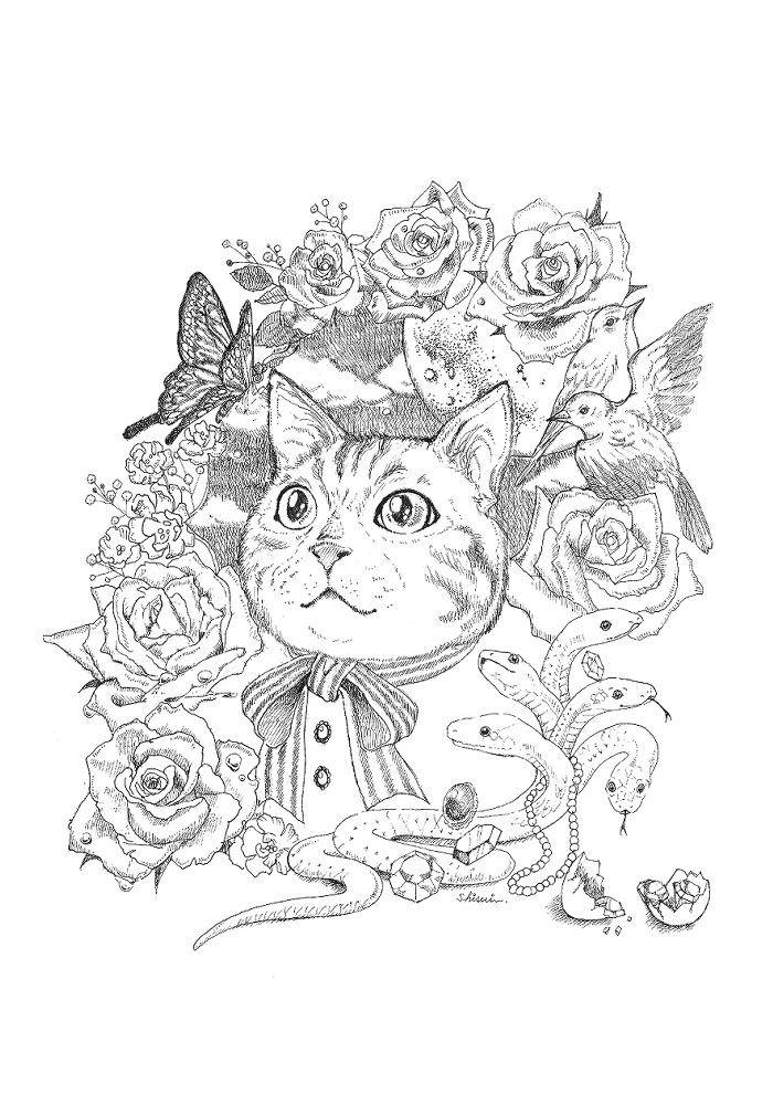 お店のTシャツに以前使用していた猫のキャラクターを一新させたいとの事で、オーナー様のご要望を取り入れ、ペン画でこの様な世界観を出しました。