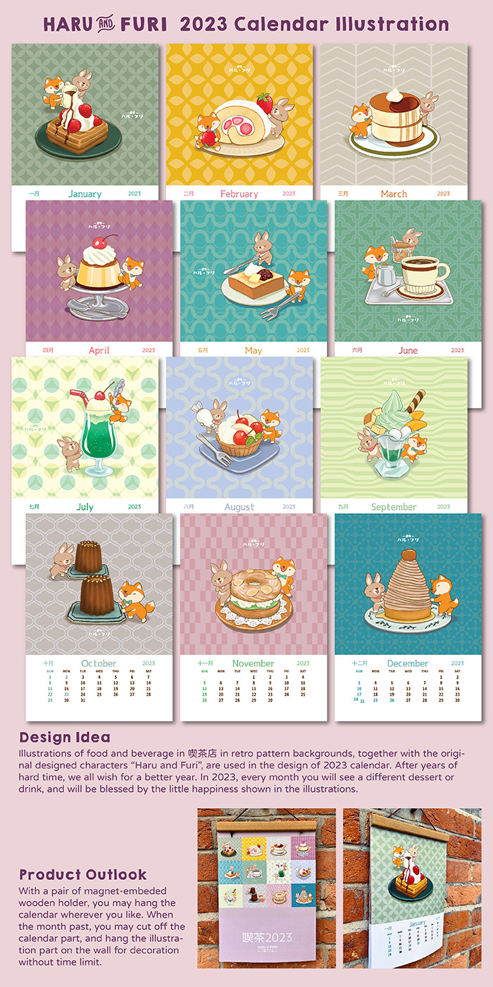 【作品に関するコメント】 It is the calendar of 2023. More about the characters "Haru and Furi": https://www.harufuri.com/
