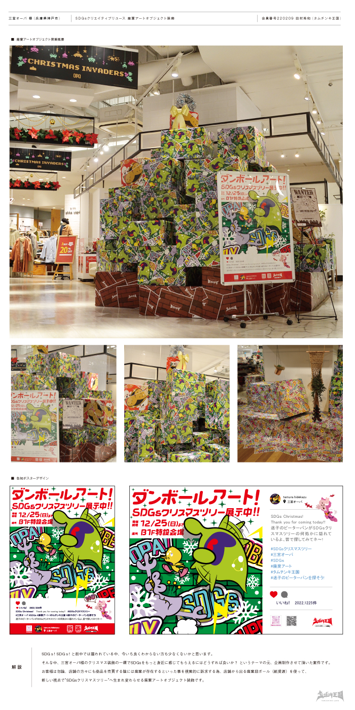 そんな中、三宮オーパ様のクリスマス装飾の一環でSDGsをもっと身近に感じてもらえるにはどうすれば良いか? というテーマの元、企画制作させて頂いた案件です。