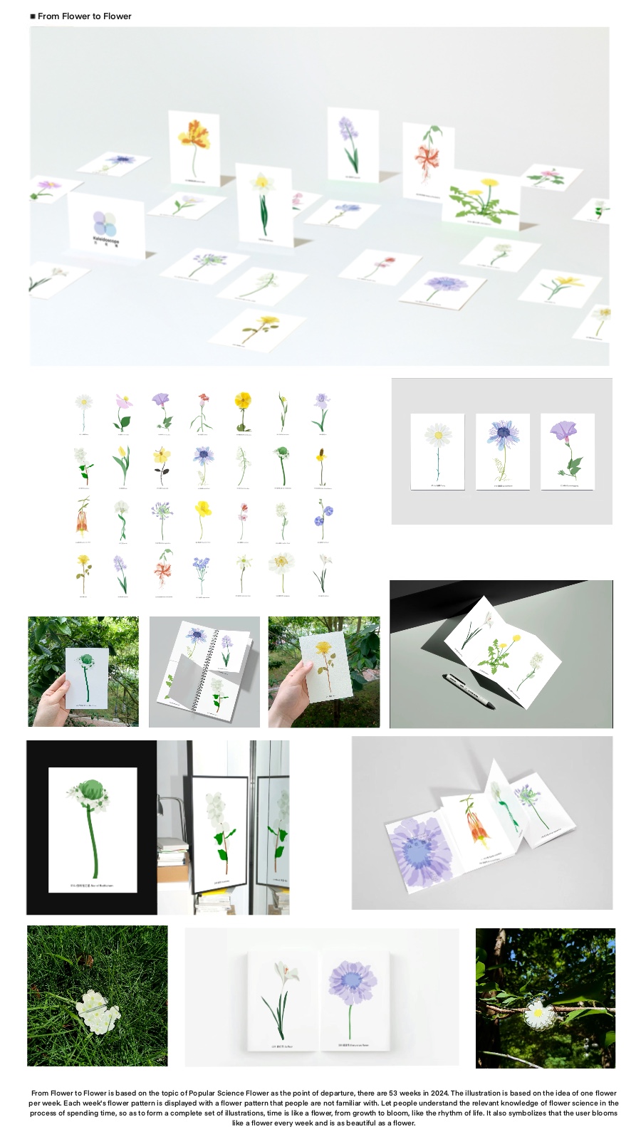 The name of the clientShape Studio The media in which the illustration used絵カード Artist's commentsFrom Flower to Flower is based on the topic of Popular Science Flower as the point of departure, there are 53 weeks in 2024. 「花から花へ」は、科学大衆の花のテーマを出発点として、2024年には53週があります。 |