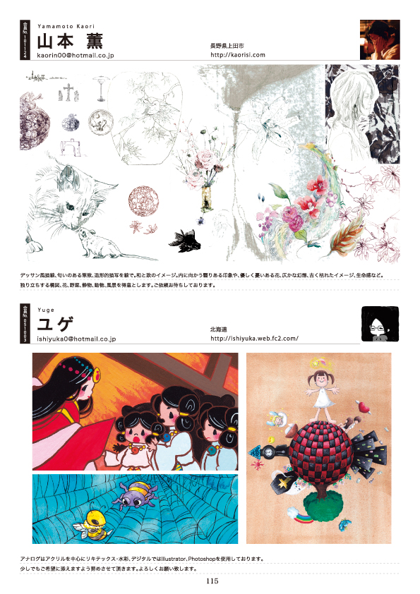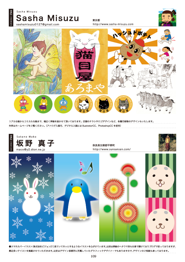 日本イラストレーター協会年鑑2015に掲載されるイラストレーターのリストです。