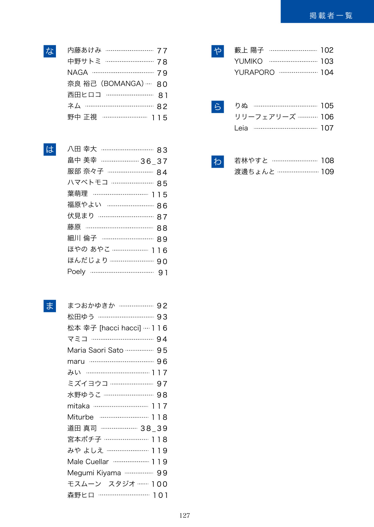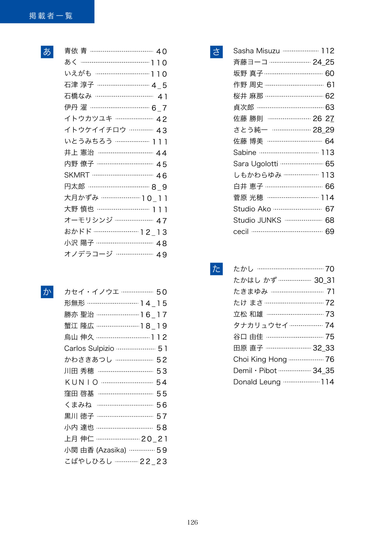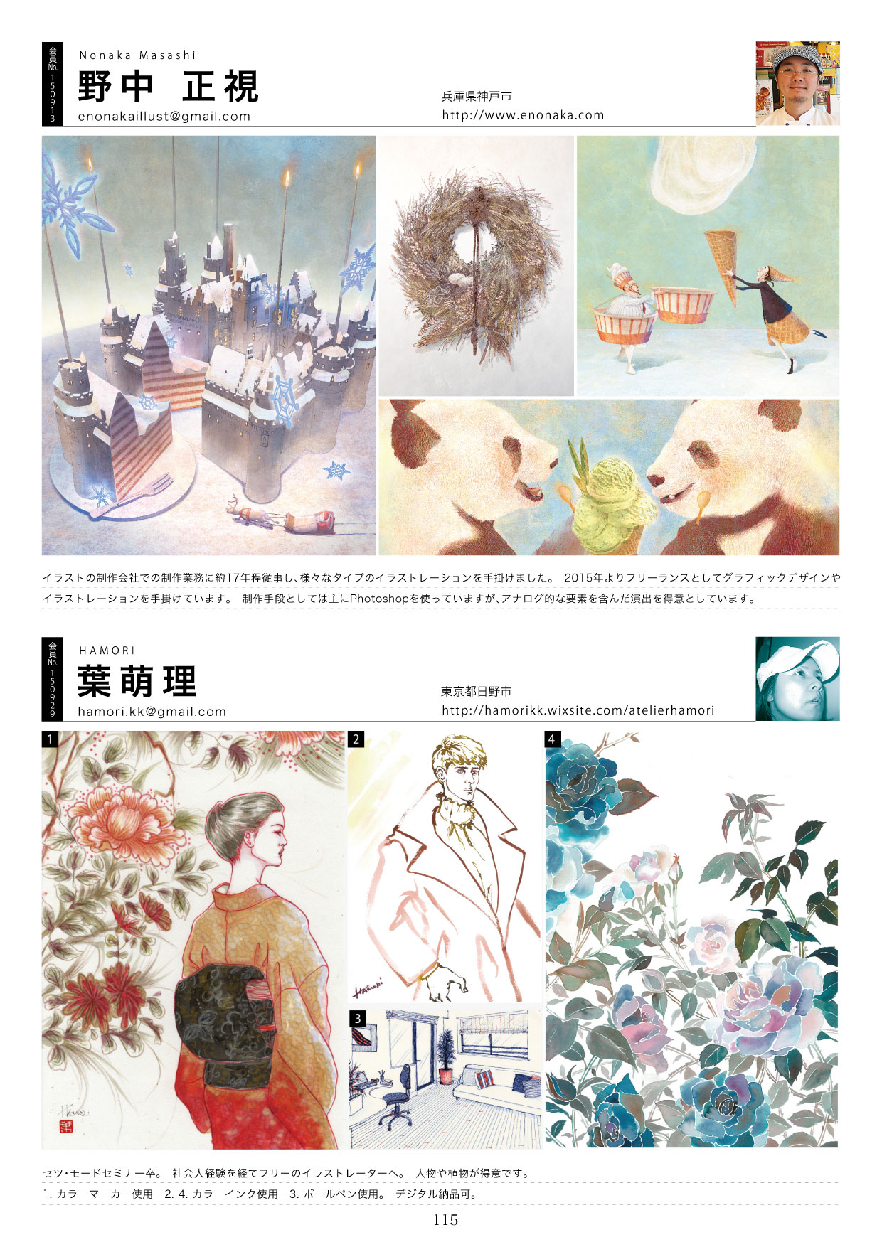 日本イラストレーター協会年鑑2017に掲載されるイラストレーターのリストです。