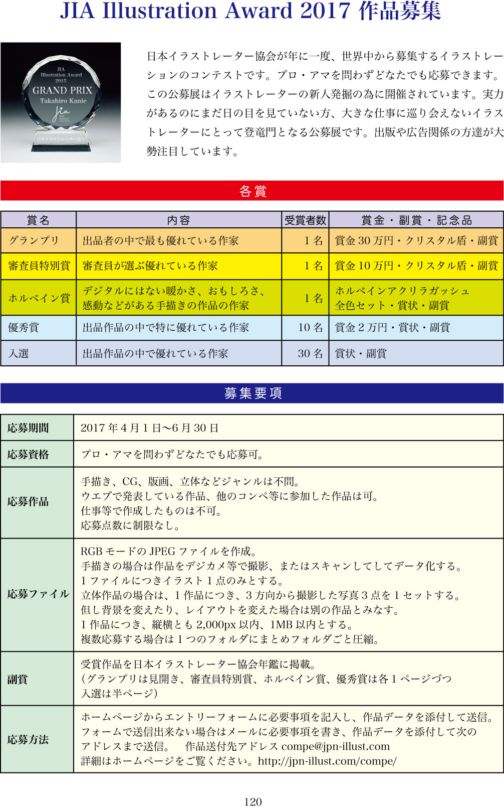 | 120 | JIA Illustration Award 2017 作品募集 |
